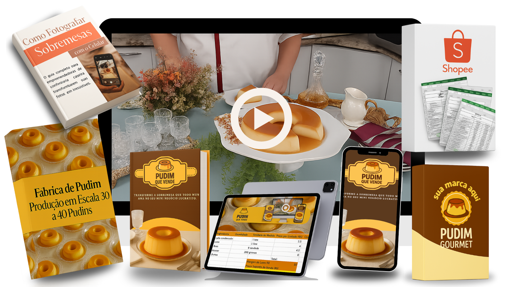 Uma vídeo-aula completa e prática, onde você vai aprender passo a passo como fazer o pudim perfeito que encanta e vende sozinho.